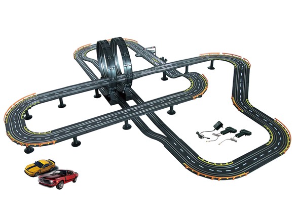 Race your Mustangs through the loops and curves but watch for the crossover track!