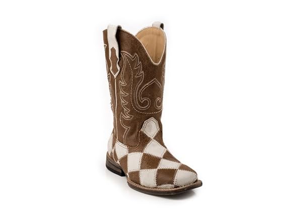 - (1) Pair of Roper Brown Square Toe Crackled Patchwork Cowboy Boots