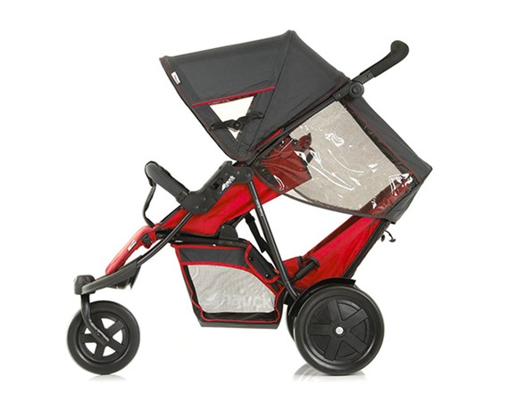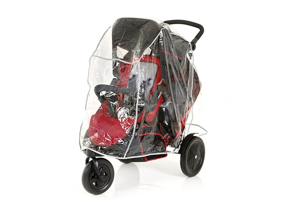 An extendable canopy with viewing windows offers the best protection against sun, wind and rain, and covers both children