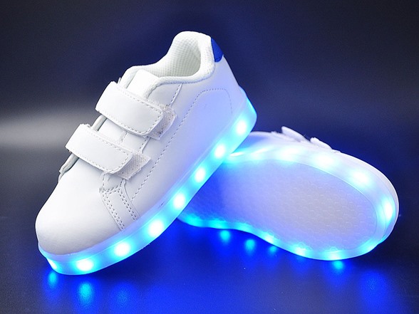 Kids Gleamkicks LED Lightup Shoe (8T-2.5Y), Blue Trim