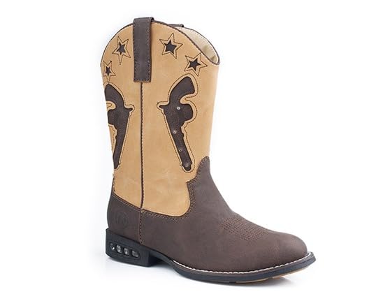Roper Western Lighted Brown Faux Leather Pistol Cowboy Comfort Boots (Size 12Y)