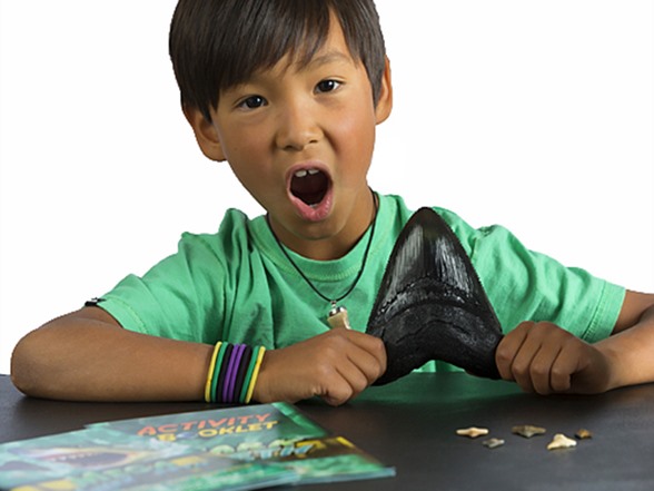 Also includes a museum-quality replica of a giant Megalodon tooth cast from one of the largest Megalodon teeth ever found