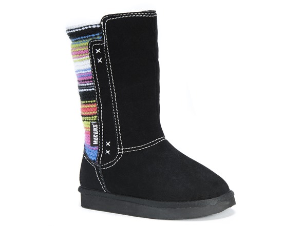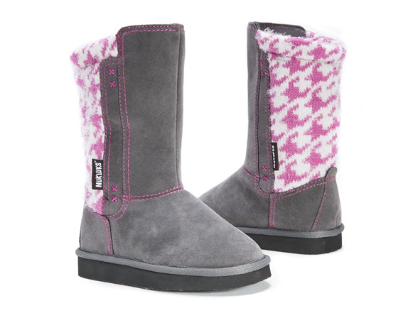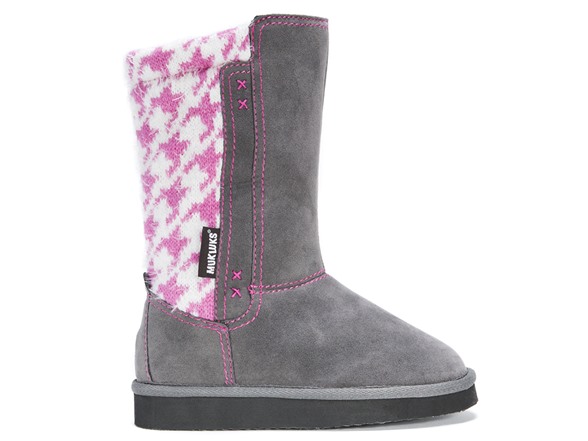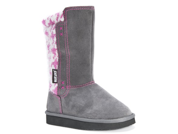 Keep your little girl smiling in MUK LUKS Stacy boot. This adorable outdoor boot is a perfect wardrobe addition. Various colors to choose from such as Dark grey, Brown, and Black. No heel. Available in sizes 10,11,12,13 and 1 with easy care instructions. Spot clean and dry flat. No bleach. Imported.